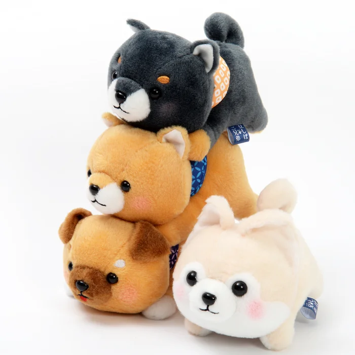 Your favorite Shiba Inu pups have been playing all day, making them so tired they just sprawled on the ground! About 7.1” long, 3.1” tall, and 3.3” wide, Mametaro, Mamejiro, Mamesaburo, and Sasuke are your standard size plushies you can hold in one hand, so why not let one of these puppies rest on your palm? You can also get the Complete Set for a group hug!
